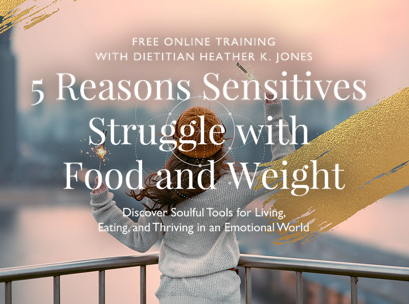 During these intense and emotional times on the planet, it’s more important than ever to understand your sensitive nature and how it shapes your health and wellbeing. Many sensitives are struggling to feel secure amidst so much change. Without supportive practices, and perspectives, it’s easy to turn to food, dieting, or numbing behaviors just to cope. In this free masterclass, you’ll uncover the 5 main reasons sensitives struggle with food and weight, along with nourishing tools to help you eat, live, and thrive in an emotional world.